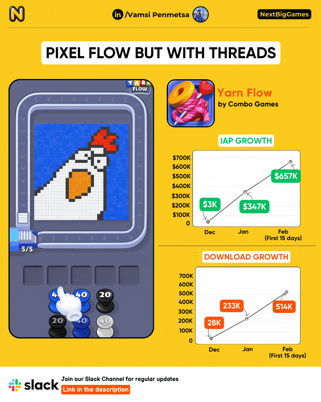 From modest beginnings to six-figure momentum, Yarn Flow proves that calm gameplay can scale aggressively when paired with strong core systems.